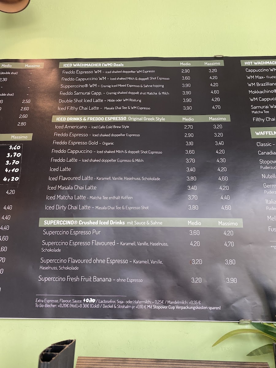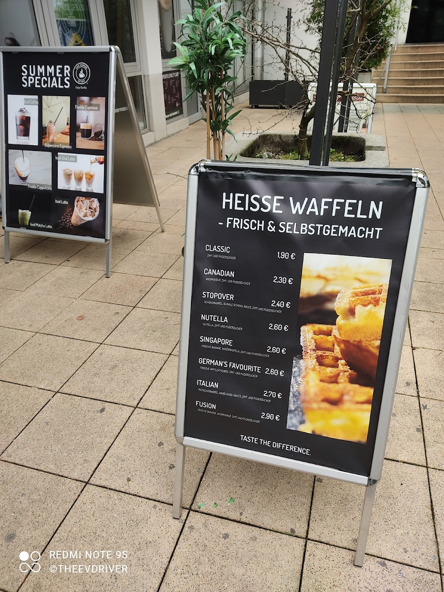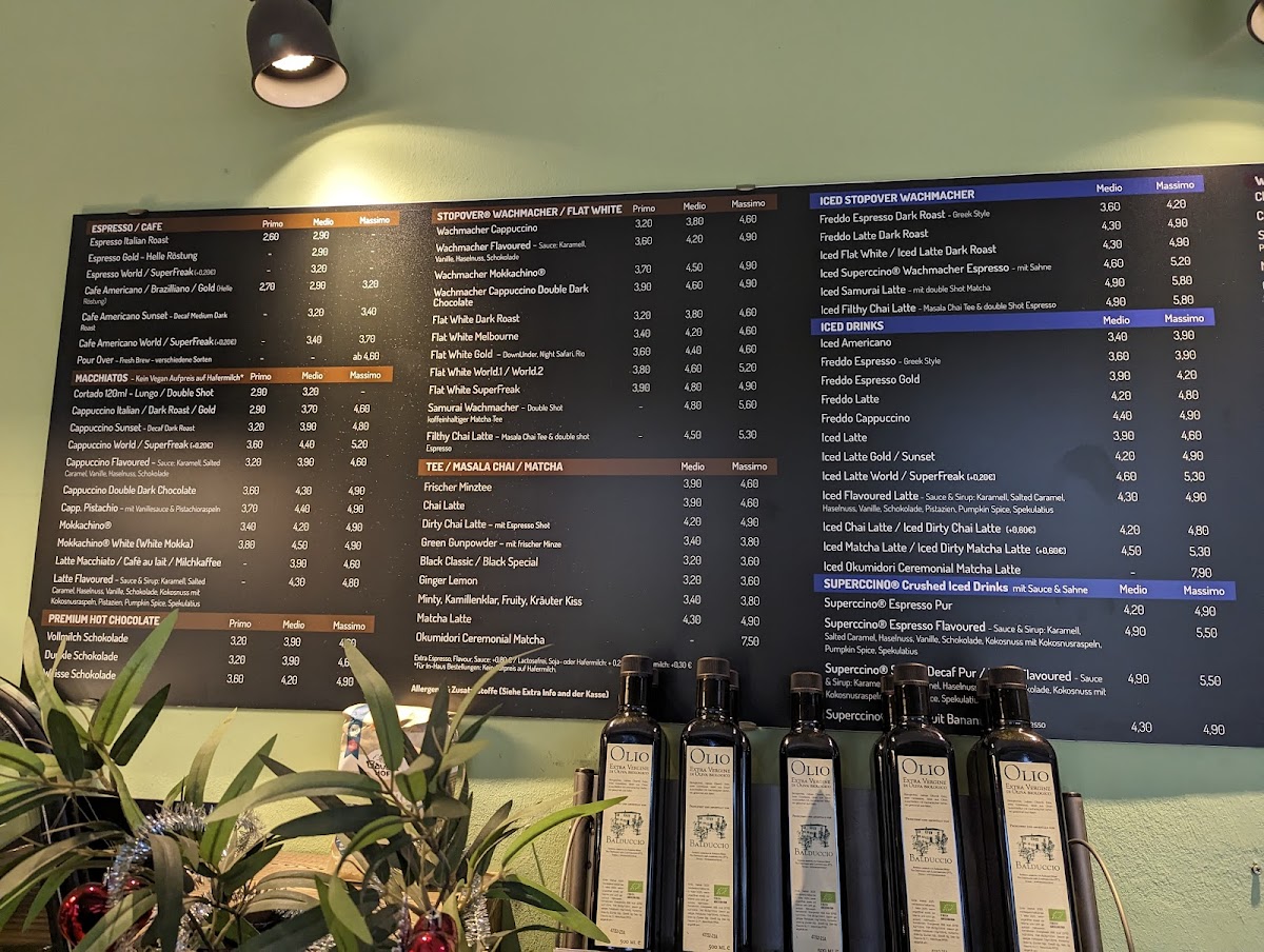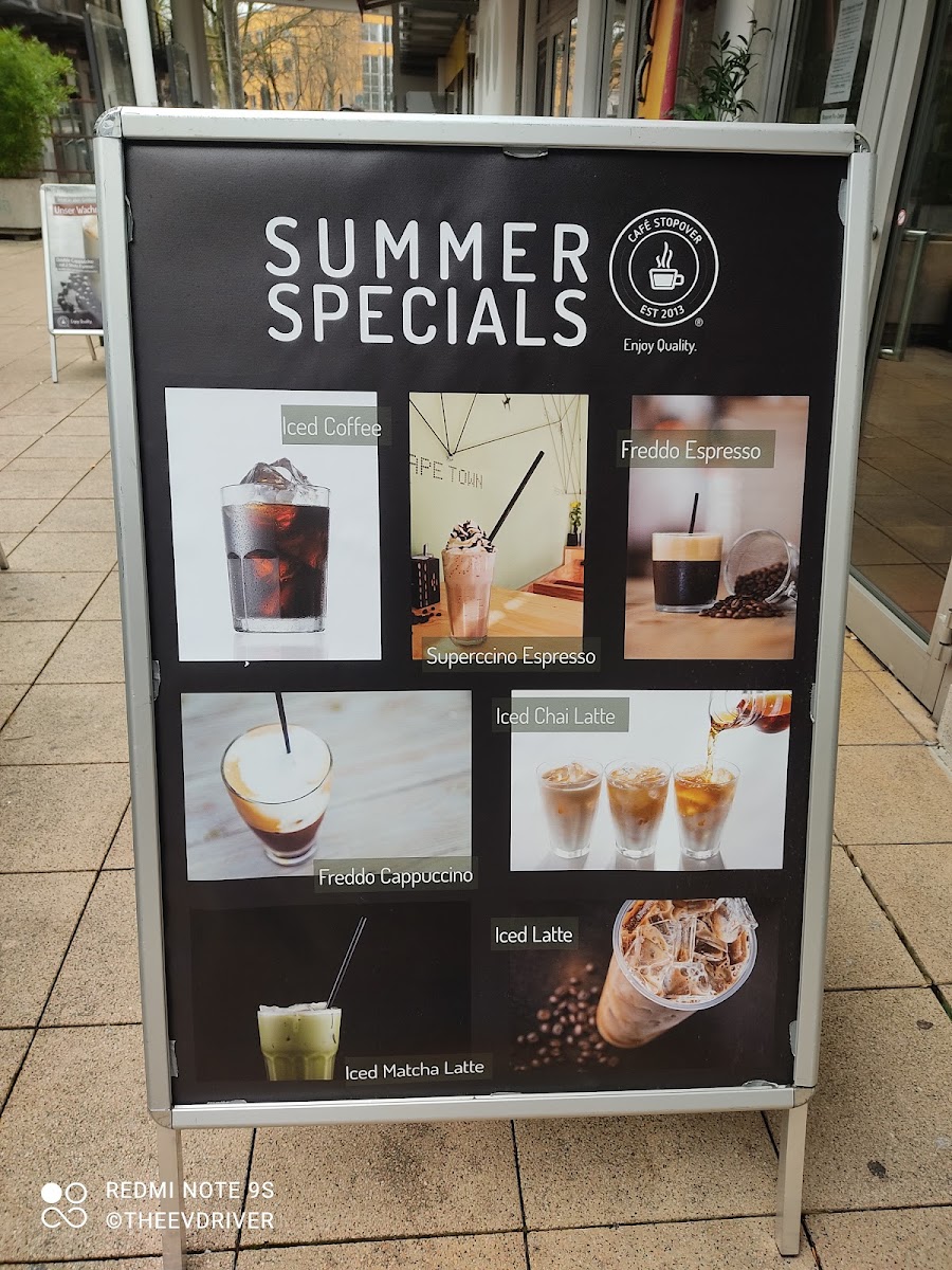 The menu at CAFE Stopover features a range of offerings typical of a café, bistro, and espresso bar. It primarily focuses on coffee and espresso-based drinks, including varieties such as cortado, chai latte, Italian cappuccino, and a specialty cappuccino gold. In addition to beverages, the menu includes light food options like Belgian waffles, including a version served with Nutella. Seasonal availability may affect specific items, such as waffles, which are not offered during the summer months.